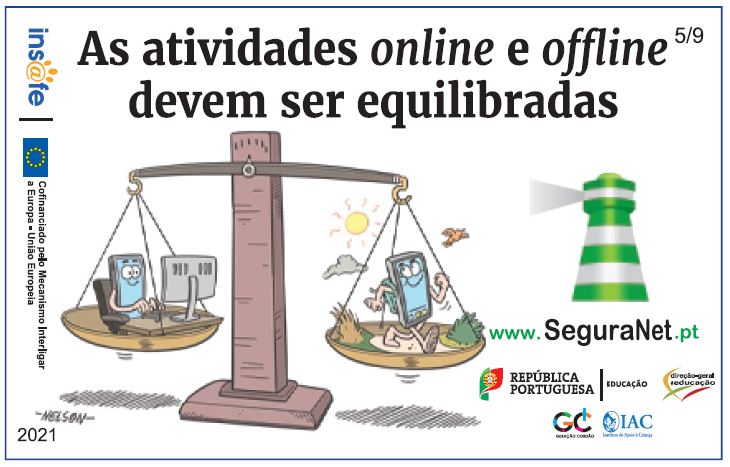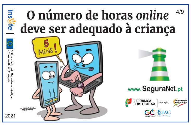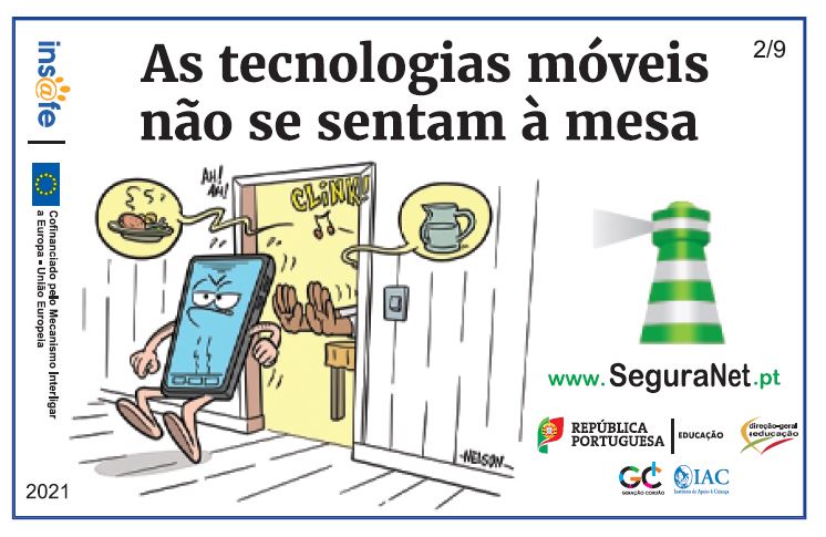 São nove as situações apresentadas sobre a prevenção das dependências online de crianças e jovens. Esta campanha nacional, que contém imagens da autoria do ilustrador Nelson Martins, segue a linha gráfica da campanha “Férias: um lugar tecno saudável!”, que visa sensibilizar crianças e jovens para o uso saudável da tecnologia durante o período das férias escolares.