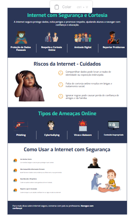 Criação de Infografias sobre cuidados a ter e cortesia na Internet.