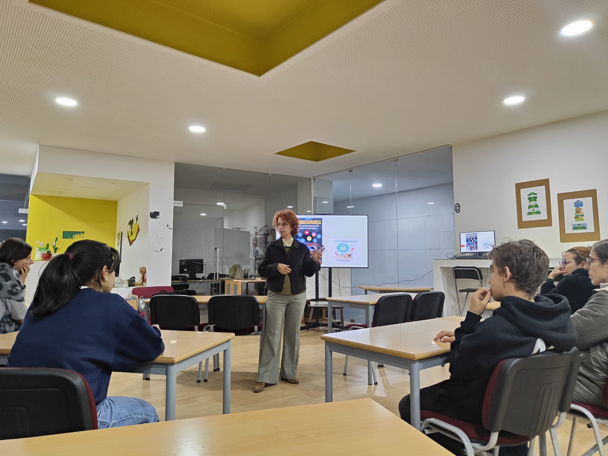 Em outubro para comemorar o Mês Europeu da Cibersegurança realizou-se uma sessão para EE/Pais & alunos/filhos, uma turma do 8.° ano, para participarem num Quiz composto por esta temática com o apoio dum elemento da CCTIC da Universidade de Aveiro e dinamizado pela Biblioteca Escolar .