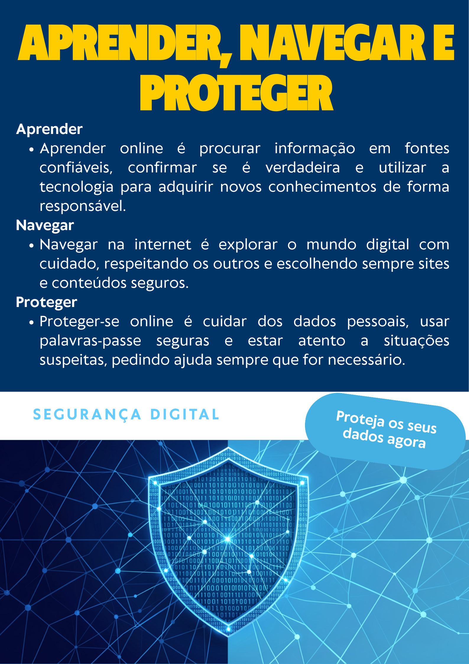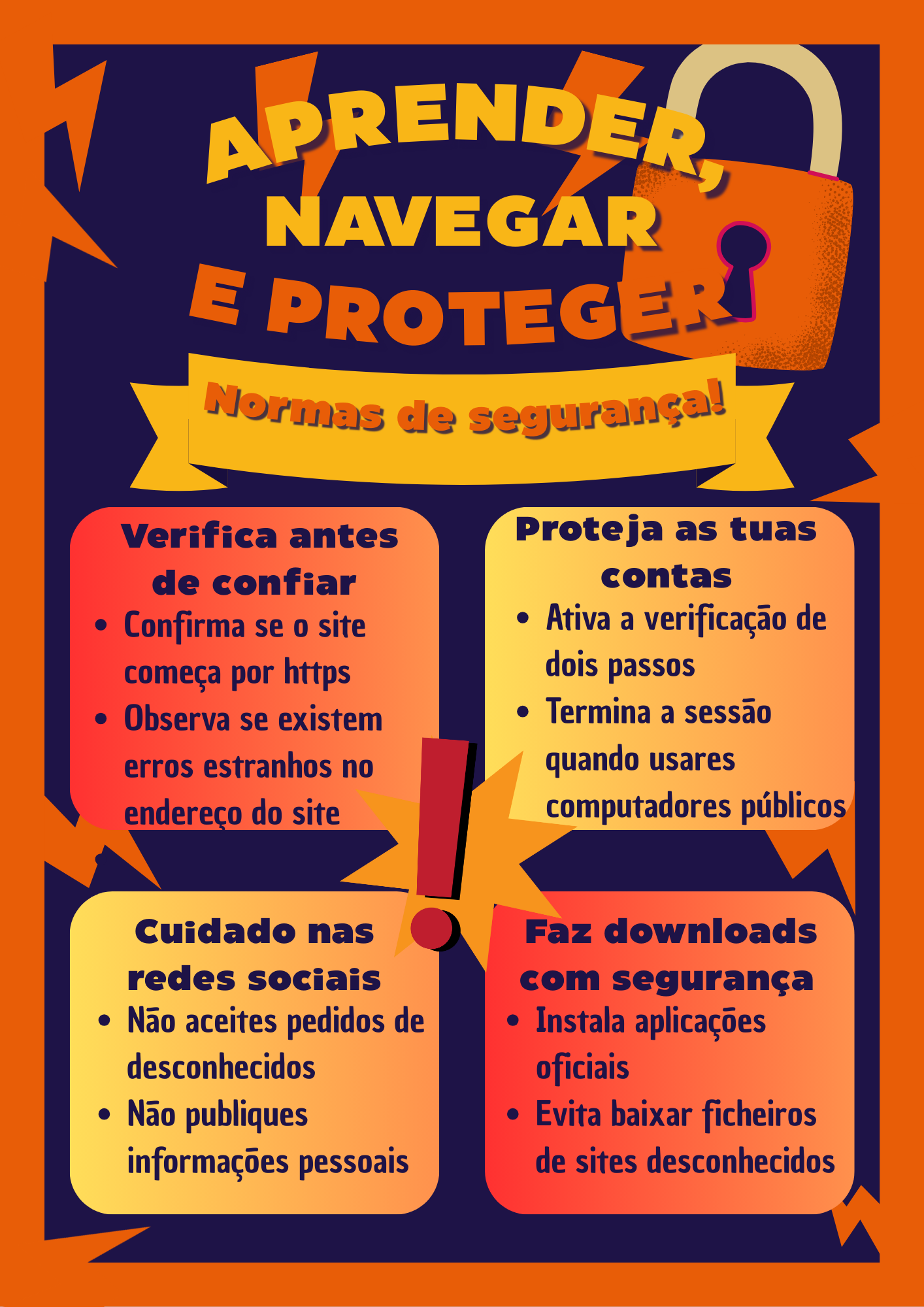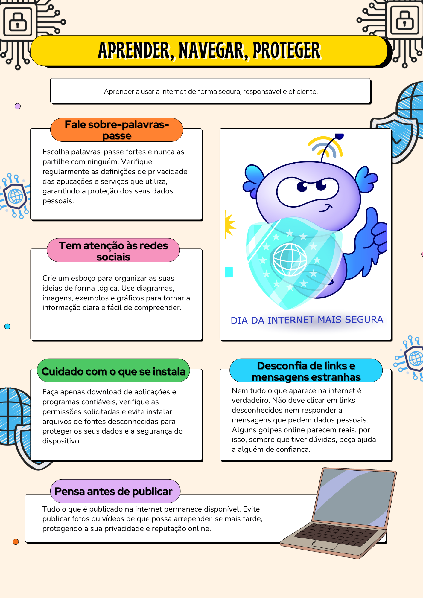 Os alunos criaram uns cartazes para expor na escola acerca de navegar de forma segura na Internet