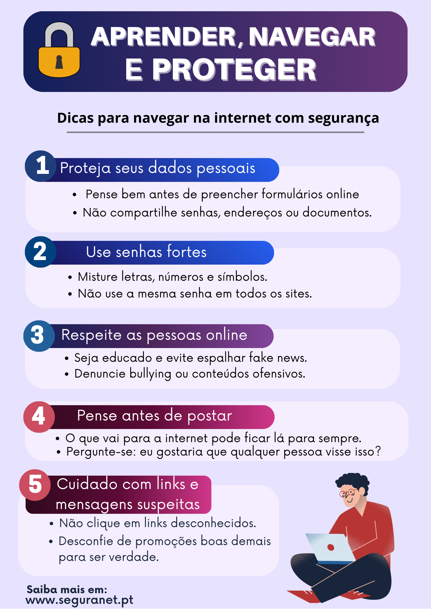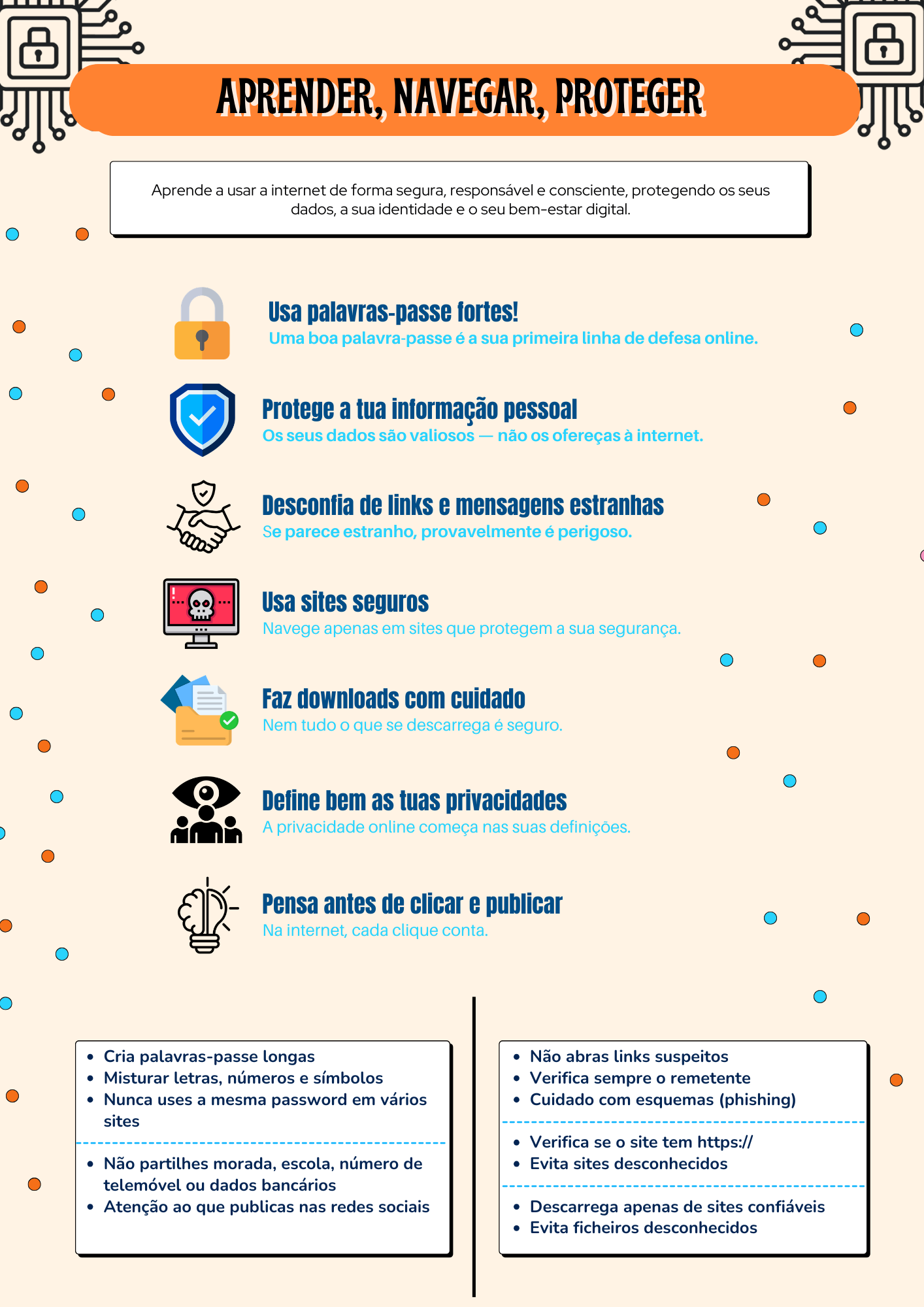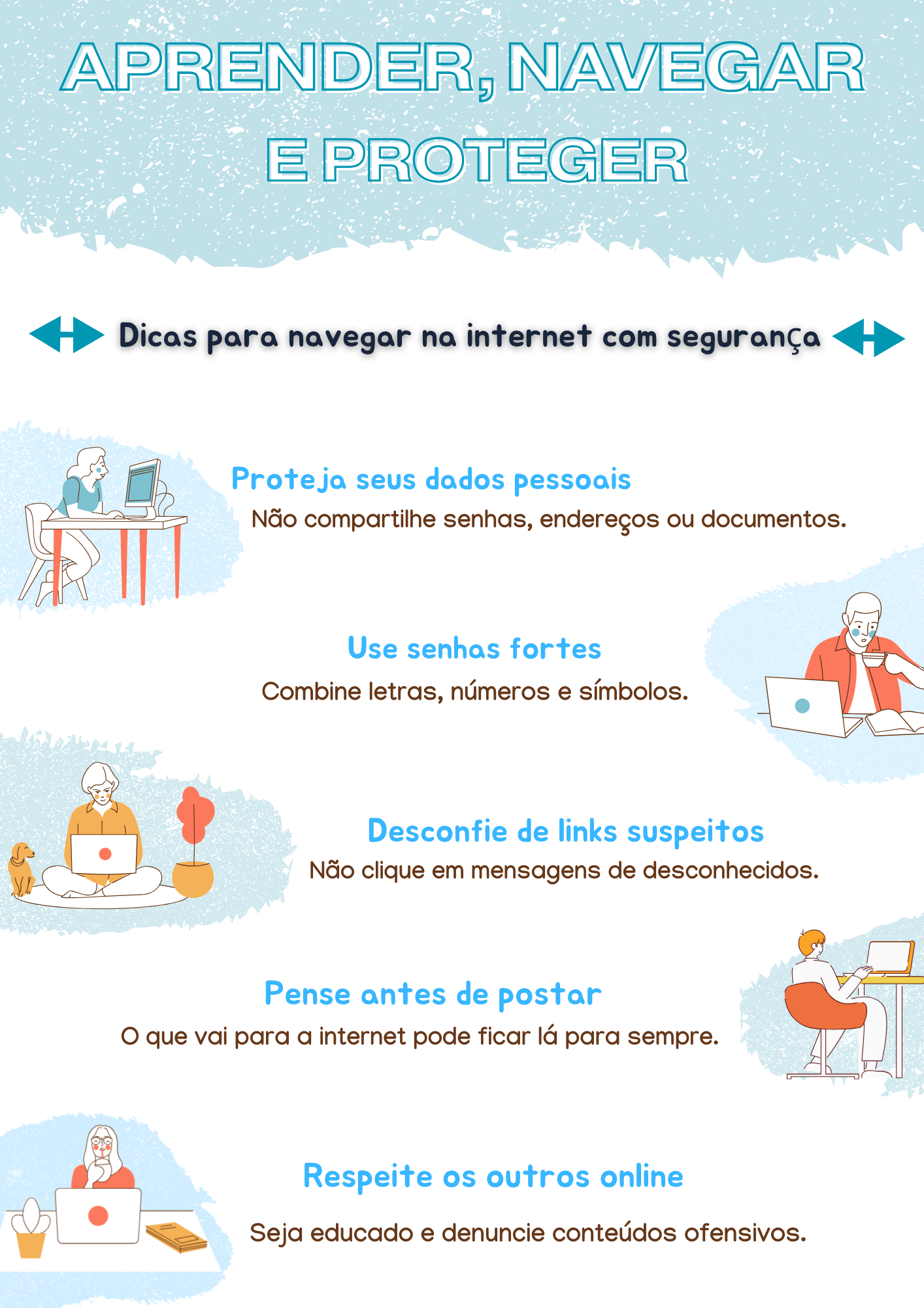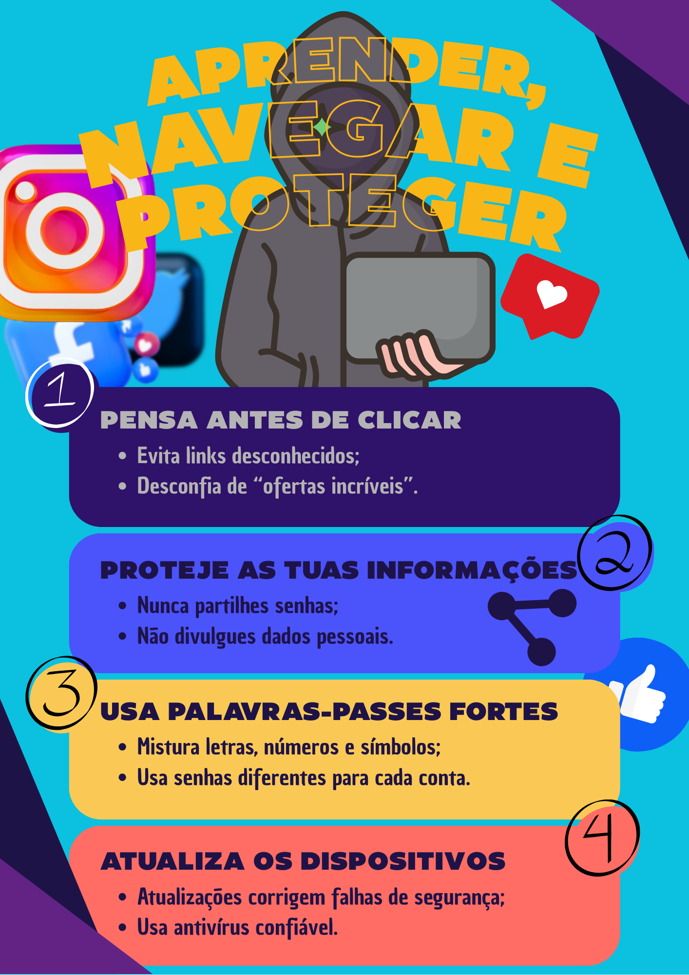 Os alunos criaram uns cartazes para expor na escola acerca de navegar de forma segura na Internet