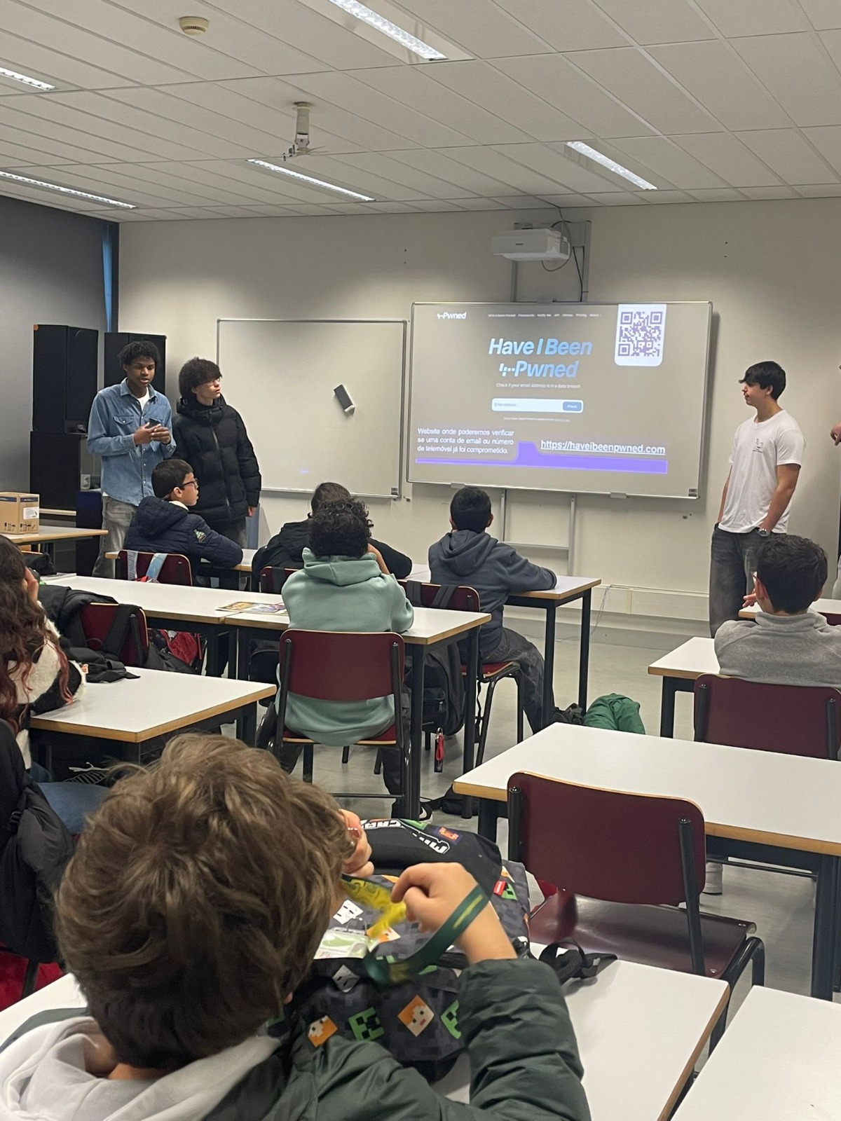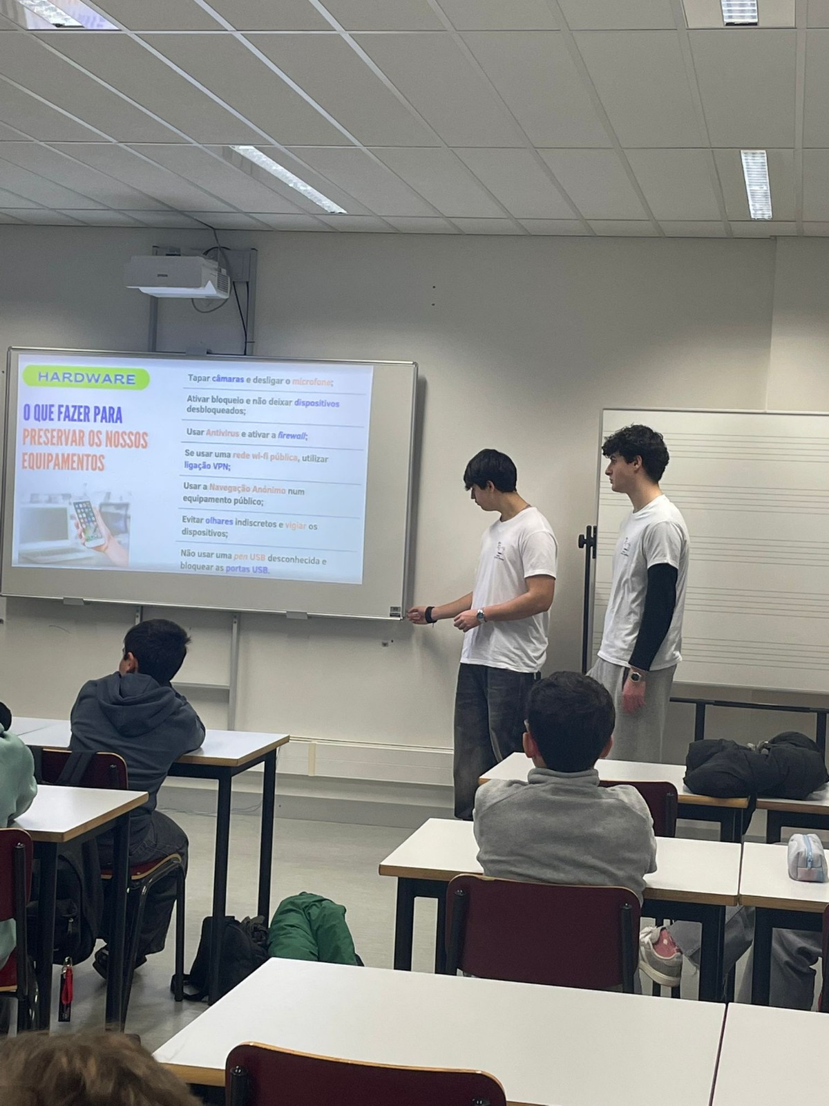Os alunos do Curso Profissional de Multimédia (PMT25 e PMT23) realizaram sessões para o 5.º ano, abordando o tema do cyberbullying através de uma apresentação interativa, um karaoke educativo sobre segurança online e a criação de animações em stop motion. A turma do PIS24 dinamizou ações de sensibilização para alunos do 6.º, 7.º e 8.º anos, explorando temas como os perigos online, palavras-passe seguras, phishing, cyberbullying, fake news, pegada digital e proteção de equipamentos, tendo a atividade terminado com um quizz interativo e a distribuição de pequenos prémios produzidos em impressora 3D.